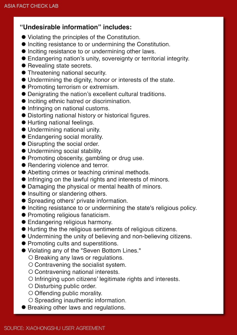 Xiaohongshu's user service agreement and privacy policy seen by AFCL show that the company stores personal user data – including all text, photos, videos, audio, comments, likes and favorites on the app – in China. Data will be collected and provided to Chinese authorities if requested to do so.