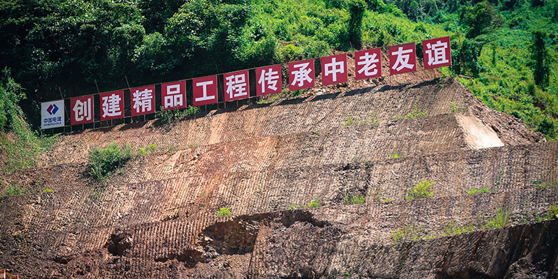 On a high bridge, bold red signs display Chinese words. Next to the worksite, we’re met by the sound of Chinese pop songs. We see a brothel with young women who came from Luang Prabang. They had heard there’s money to be made here from Chinese workers.