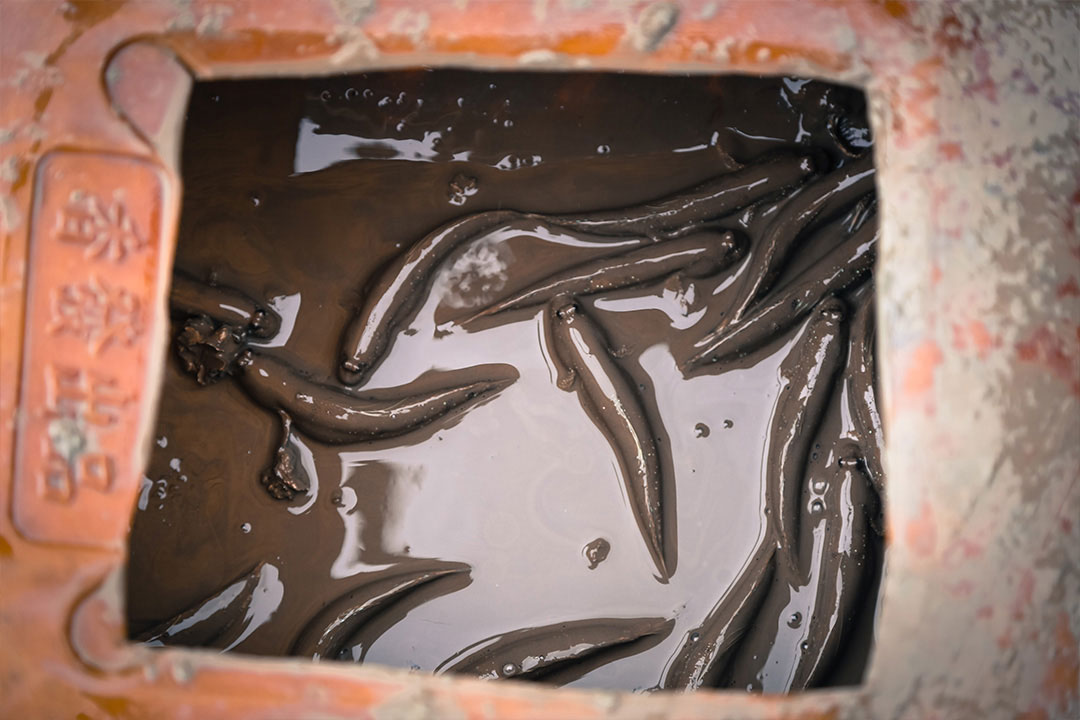 The farm owner explains that the fish grow for 10 months. He sells one batch of fish every year to a Vietnamese fish-processing company for export to Japan, the U.S., and China. The stock of fish farmed in Vietnam’s delta is now greater than that from its other freshwater and seawater fisheries combined. The farmer says that they don’t eat their own stock. It’s taboo, bad luck. He tells me that when he was a child, they could catch fish off the side of their boat. Nowadays they buy fish from the market. This year when the water was very low, the oxygen levels fell dramatically and the fish suffocated in the intensively packed cages. They improvised by putting a boat in front of the farm and ran the propeller to force aerated water through the cages.