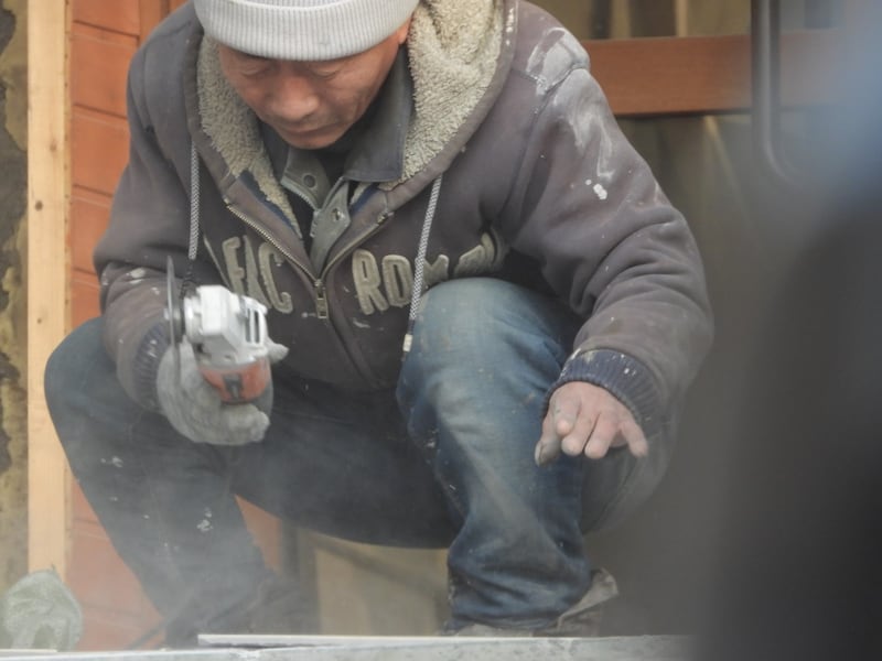 러시아에 파견된 북한 노동자가 절단방지 장갑 없이 맨손으로 절단기를 사용 중이다. /사진제공- 강동완 교수